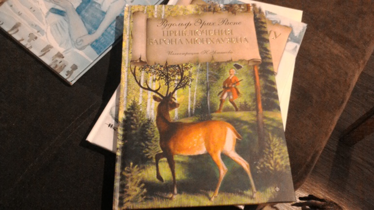 Барон Мюнхаузен. Не менее чудесна! Иллюстрации Устинова. Я разглядывала их, и сердце замирало! Такие...красивые! Ну вот смотрите: