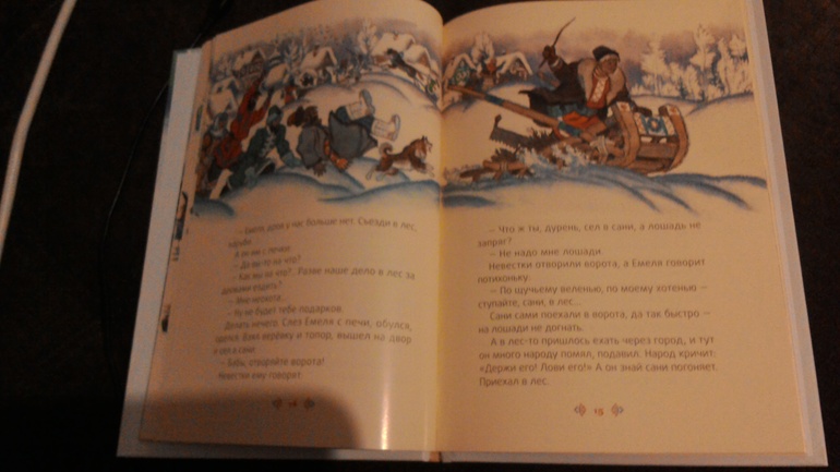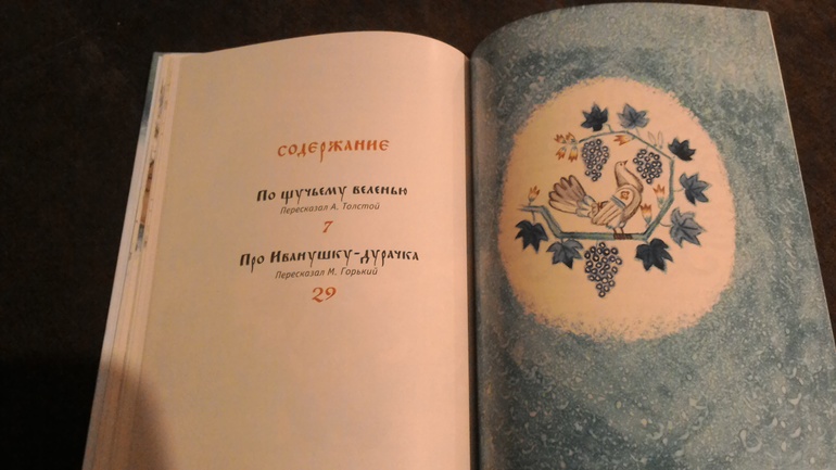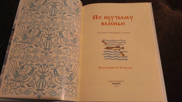 И третья книга "По щучьему велению". Вообще супер книга! Иллюстрации Кочергина, пересказ Толстого и Горького. В книге две сказки: По щучьему велению и Про Иванушку-дурачка. Вторую сказку я вообще не читала, но пробежалась глазами, по-моему, хоиошая)