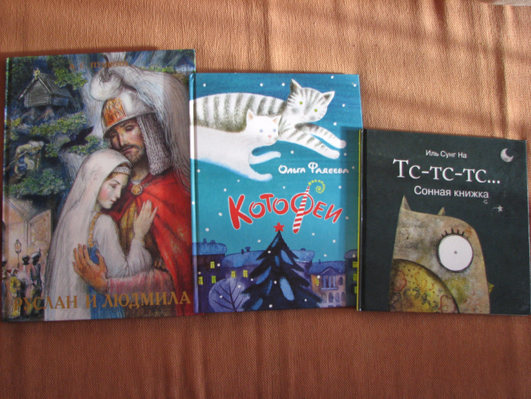 "Руслан и Людмила" - просто скажу, что муж, который не является фанатом детских книг, придя домой после работы почти в полночь, посмотрел каждую иллюстрацию из книги. Ну и, как уже сказала, Сашка выделил её из всех остальных "взрослых" книг. А я просто тихо постою в сторонке в восторге.