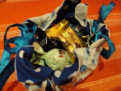 Конфеты в мягкой упаковке .Если развязать ленточки ,получится забавная конфетница.