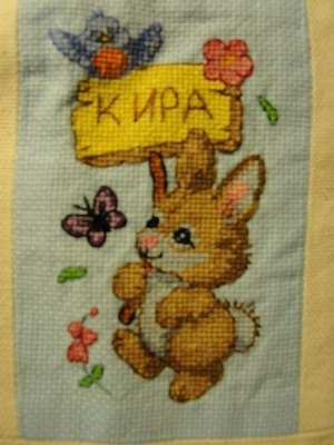 Вот такой именной мешочек для Киры .Кропотливая работа .И символ следующего года Обезьянка