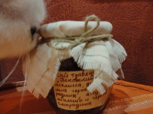 К сладкому прилагается чаек ,не простой.... сбор из душистых трав ,самолично собранных высушенных,упакованных. Аромат - просто обалденный!! Воспоминания о летних деньках ,луговых разнотравьях, смехе, бабочках, прогулках. Хорошо.....Запахи запахи Нравиться даже ей .Кошек не обманешь !!!