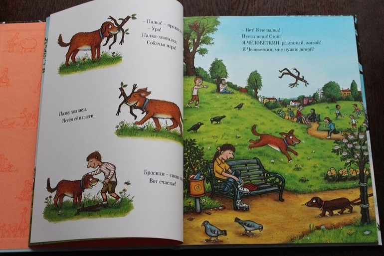 А еще она большая - это раз. Плотная и яркая - это два. Упакованная в целофанчик наглухо - это три. И такая ритмичная и классная в переводе Марины Бородицкой, что это четыре, пять и сразу десять.