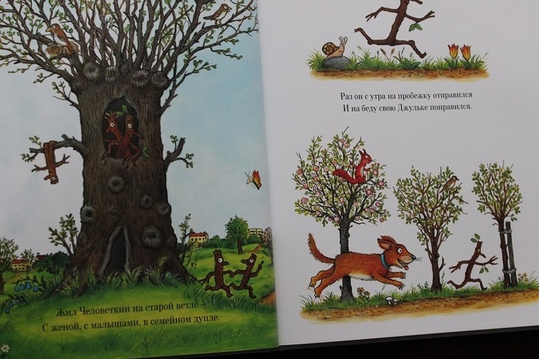 А иллюстрации Акселя Шеффлера - знаю, кому-то они не нравятся, есть и такие и я могу их понять - но меня они привели в восторг. Где-то в душе мне все-таки лет шесть, вероятно)) И в первую очередь, они мне показались идеальными по цветам. Книга яркая, контрастная, но не кислотная и не слишком пестрая. Цвета сдержанные, но насыщенные. Глазам очень приятно - и я думаю, не устану читать эту книгу никогда :)
