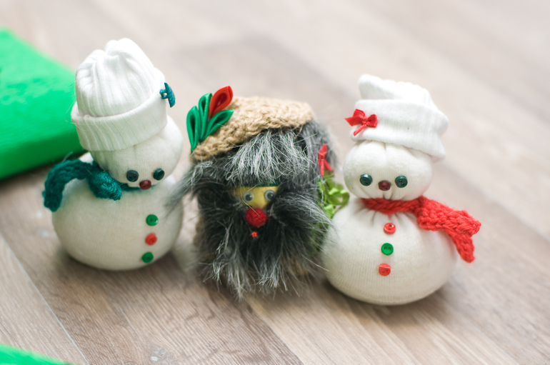 Снеговики- они не простые... Это крупенички- на достаток, добро ,сытность в доме(по поговорке- зимой снега не допросишься Все в свой дом)Шапочки натянуть до до глазок. И домовик- Он- Главный в этой компании!!!!!!!!!!!!!!!!!!!