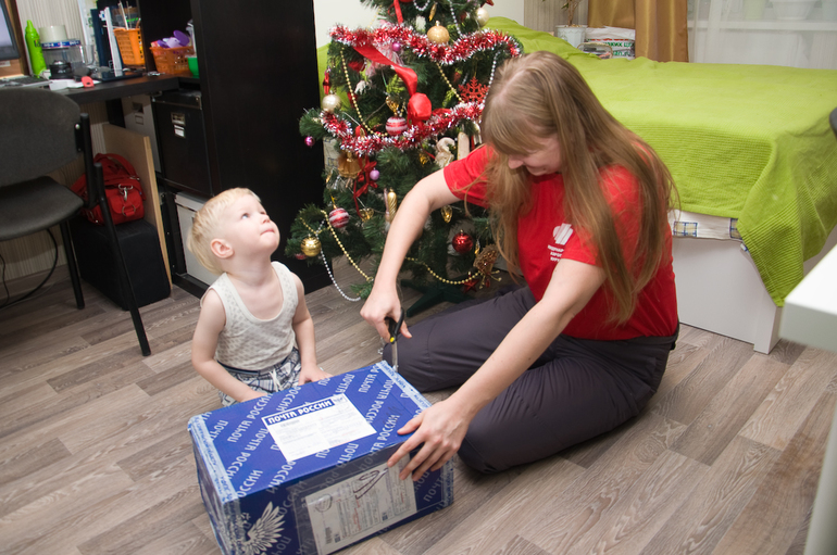Не шла, а бежала за посылкой на почту, скорее к чудесам. Заполняю извещение дрожащей рукой, это уведомление так и не пришло нам. Спасибо крестной фее ОП подсказала, что пора бежать на почту. Тут суета, кто-то с квитанциями за коммунальные услуги возмущается, ругается. «Как вы можете ругаться в ТАКОЙ день волшебный?» - про себя думаю я. Ах, да, для них он обычный, наверно. Отдают. Ого, похоже, нам прислали кирпичи на долгожданное строительство дачи! Собрав волю в кулак, тащу эту огромную и тяжеленную коробку к дому. А в мыслях только: «А что там мне? А что Семе? А какая книга???!!». Добегаю. Семен уже прыгает в коридоре: «Подарок! Мне!». Тебе, кому же еще.