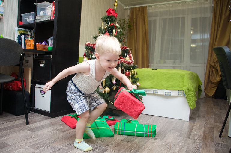 Давай все подарки под елку сложим и папу подождем. «Нееет!»