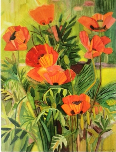 От окна с открытой форточкой и цветов жёлтых, подсолнухов оторваться не могу, хотя не хотелось выбирать. Маки.