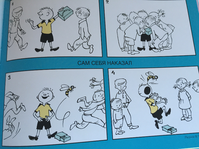 Рисунки развивают воображение, чувство юмора, речь. По ним можно придумывать истории, рассказывать их вслух, обсуждать.