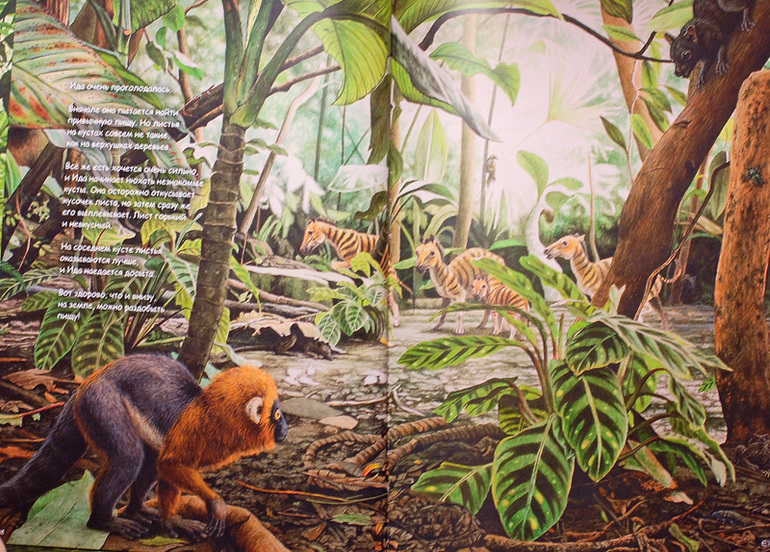 В этом отличие книги от просто красивого альбома на тему палеонтологии. По моему представлению научная книга для детей младшего школьного возраста должна быть именно такой, исторически точной, без ляпов и приближений и максимально художественной, интерактивной одновременно.