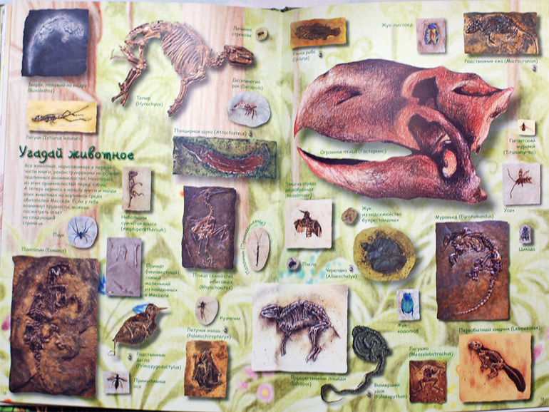 Книга хороша проработанностью. Здесь всё обосновано и не лишнее. Красивые иллюстрации в первой части - не просто плод фантазии художника. Во второй части ко всем нарисованных животным даны фотографии скелетов , есть задание найти животное по его окаменелости. К каждой красивой картинке есть расшифровка - где точно указано, какой вид изображен на фоне пейзажа.