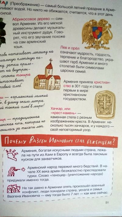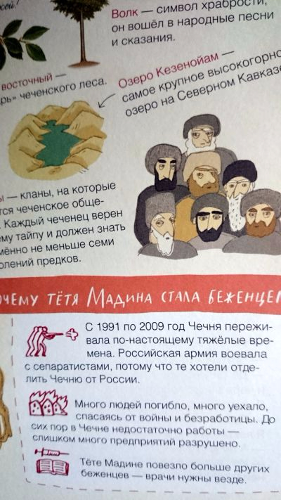 Возраст читателей, я бы сказала, лет с шести примерно. С удовольствием почитала бы Фельке, но сомневаюсь, потому что причины эмиграции у большинства людей довольно трагические, и Фелька это не пропустит и будет лить слёзы. Само по себе ничего и даже полезно, но попозже, а в 4 года ещё не хочется объяснять ребёнку, что войны вовсю идут вокруг него. А вот для тех детей, которые уже об этом спрашивают, книга очень важна. Гораздо страшнее, когда нечто замалчивается взрослыми, чем когда об этом можно почитать и обсудить прочитанное, к тому же, в контексте, где фокус уже на мирной жизни спасшихся людей.