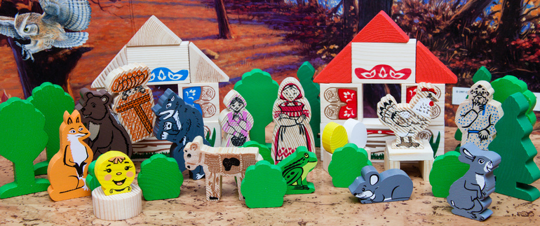 Колобок, Курочка Ряба, Заюшкина избушка, Маша и Медведь, Бычок - смоляной бочок, Волк и лиса, Теремок, Красная Шапочка.... Эх, у меня, как у производителей, фантазии не хватает.