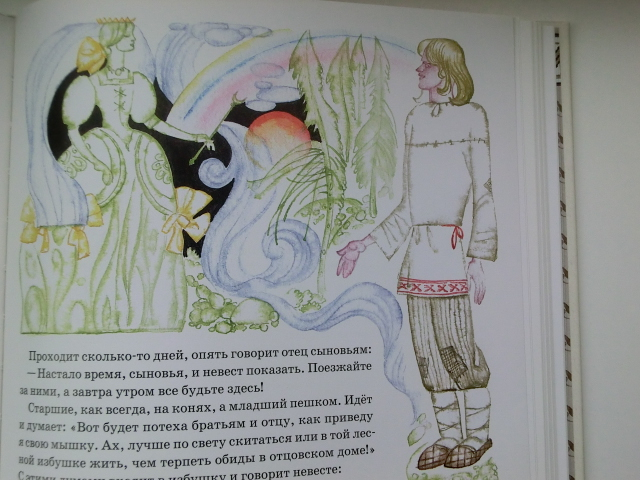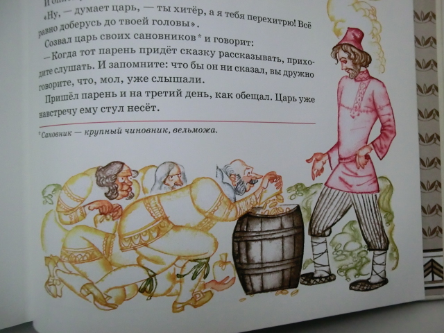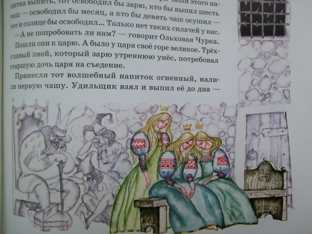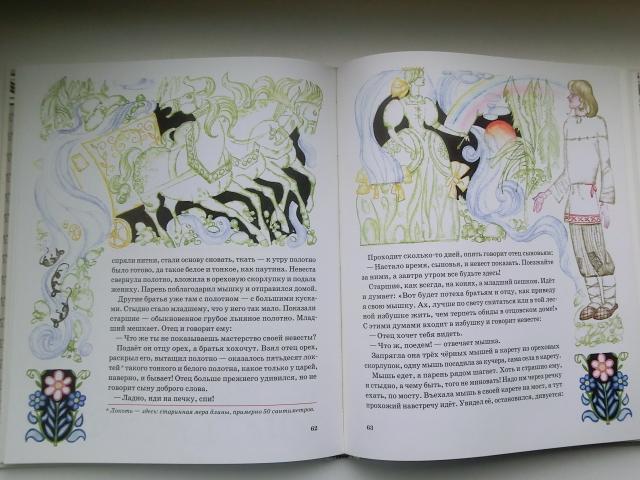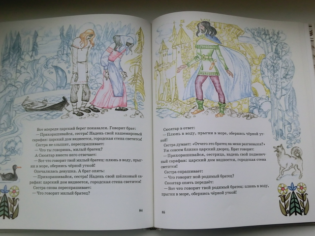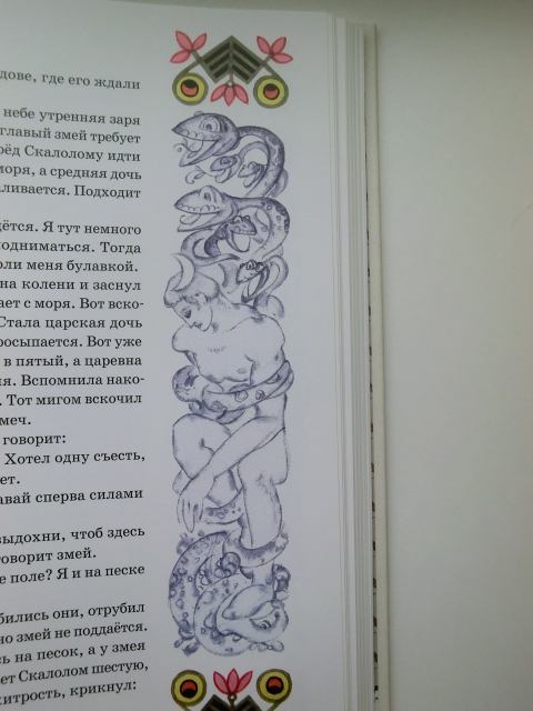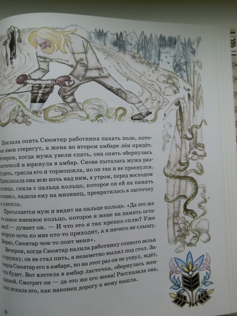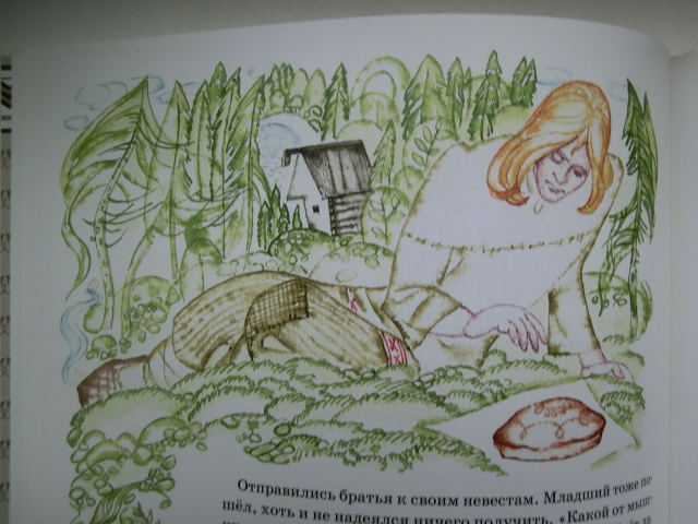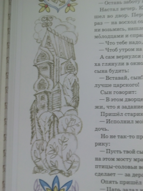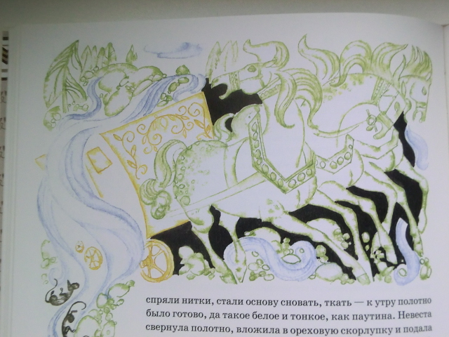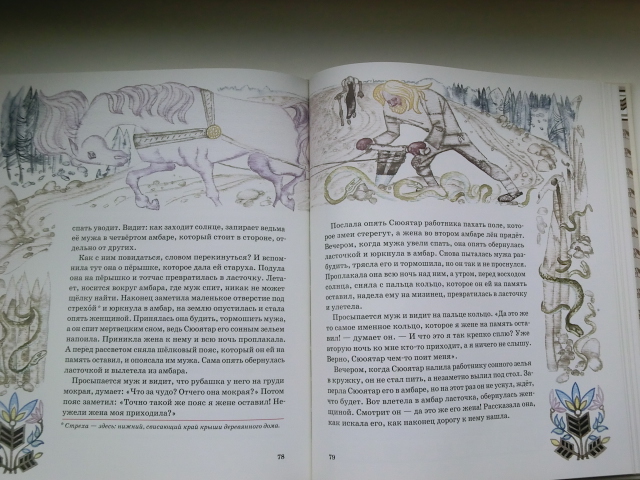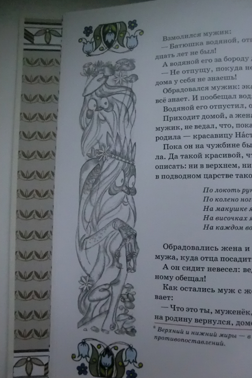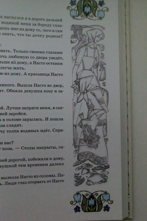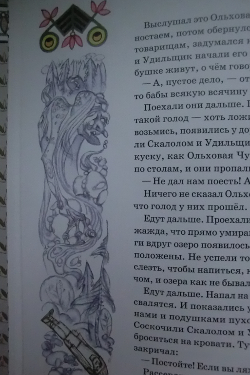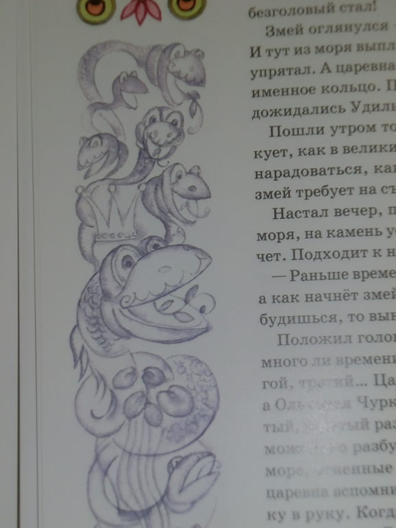 Детям очень интересно рассматривать картинки, они прямо пропитаны сказочным духом. Особенно привлекли зарисовки по бокам страниц,колоритные такие персонажи-)))
