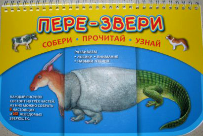 Пере-завры, Пере-звери, Пери-рыбы. Это одни из самых обожаемых. Любит читать кто получится. А бывает, что там Тираннозавр например, получается с разными хвостами и всё равно называется также. Например, получается Тираннозавр с хвостом Ихтиозавра и мы смеёмся, зачем ему такой хвост, он что в бассейн плавать пойдёт.