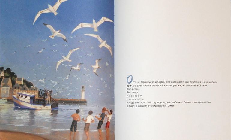 В книге прекрасные иллюстрации, воздушные, наполненные сквозным светом. Книга для любителей моря.Эту книгу нельзя читать раньше времени, маленькому ребенку не осилить того смысла, который в нее вложен. Ценности и смысла жизни, расставания и смерти, надежды и мечты.