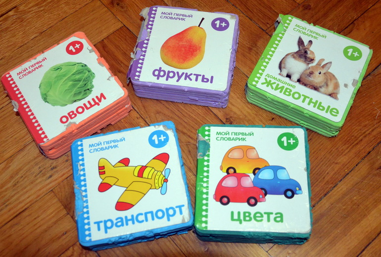 И полистать, и поиграть. В возрасте 8-9 месяцев малышу нравилось открывать-закрывать коробку с магнитным замочком, потом вытряхивать кубики и складывать обратно, строить из кубиков башню и рушить ее. Только потом его заинтересовали сами изображения, и он начал вопрошать «что это?»