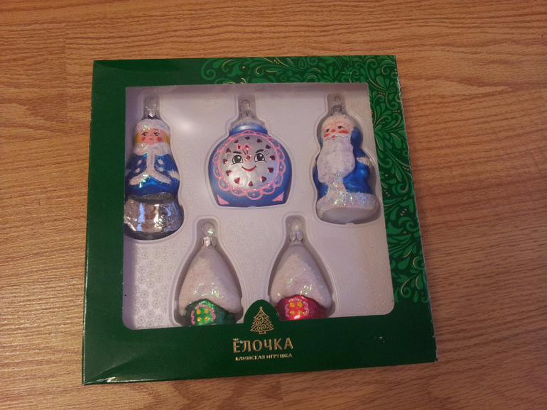 Очень красивые украшения для нашей елочки. К сожалению, снегурочка не выдержала встряски Почты России и разбилась, потеряв свои ноги)))