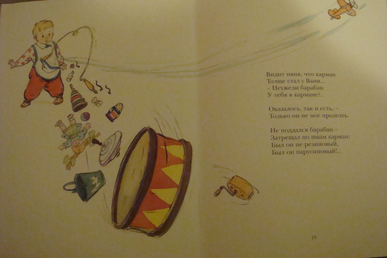 А вот здесь так интересно наблюдать по ходу стихотворения, как ребята искали и под столом и под диваном и в шкафу. И Лизе так нравится показывать: да вот же он, в кармане у Вани, за шкафом.