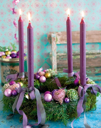 Адвент-венок Норвегии очень часто декорируется фиолетовой лентой, цветом литургии во время адвента. Изначально лента на венке должна была быть красного цвета, красный цвет - это цвет жизни.