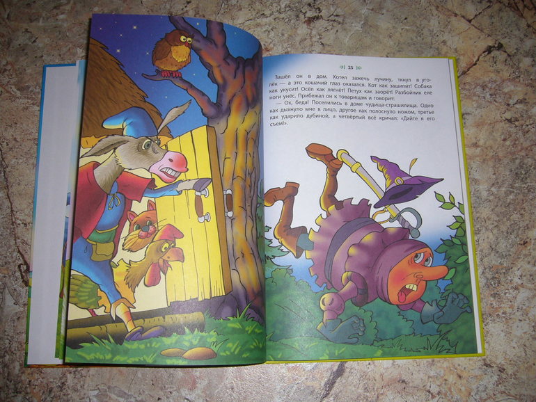 Бременские музыканты. Эту книгу купила по просьбе сына. Он её присмотрел в библиотеке и часто просил перечитывать. Благо в Лабиринте она нашлась. В книге несколько сказок братьев Гримм в обработке для дошкольников