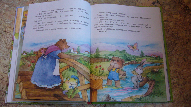 Помимо русских народных сказок из предыдущей книги, прочитали ещё Соломенный бычок-смоляной бочок. Не всё до конца понял, но понравилось- просил перечитывать. Свой нелёгкий выбор остановила именно на Речи с иллюстрациями Мавриной, а не на Нигме с чудесным Репкиным, только не смейтесь, из-за того, что у Мавриной прорисован сам процесс прилипания животных к смоляному бочку)))) А у Репкина почему то и смолы то на бычке нет. Ну да, я знаю, я шизик))) Но ведь оказалась права, ребёнок по ходу чтения задавал вопросы о смоле и о том почему на неё клеятся! И вот такие детальные прорисовки очень помогают при объяснениях и в восприятии ребёнка. Так что, кто ещё находится в муках выбора- советую обратить внимание на сей аспект. Ну вот, тонюсенькая книжка со всем известной сказкой, а я настрочила!!!! Говорю же- шизик))))