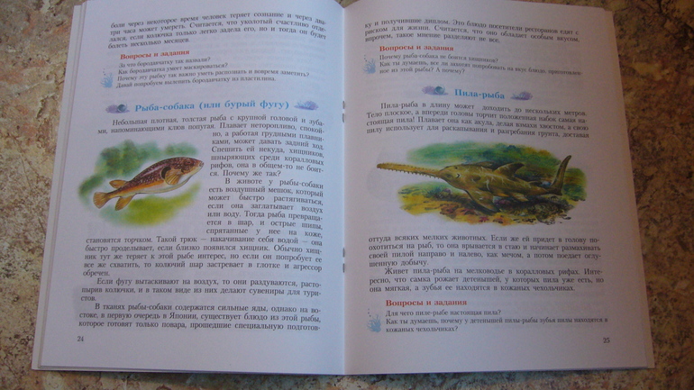 Кто в море живёт? была куплена на фоне интереса сына, вызванного книгой Чудаки ко всяким интересным подводным обитателям типа рыба меч, рыба пила. И пока мне не приглянулась хорошая энциклопедия на данную тему, я решила взять такую вот бюджетную для знакомства.