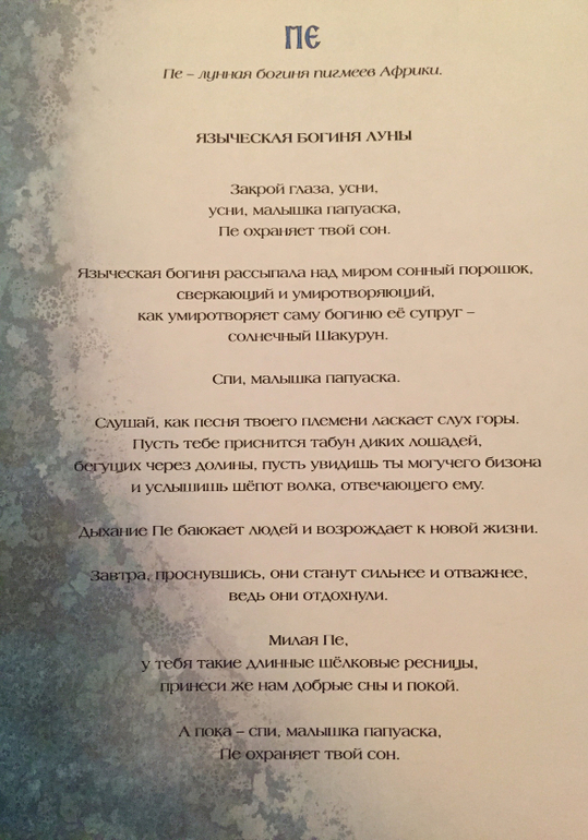 И далее, - знакомые и незнакомые имена, известные и не очень боги, прекрасные их воплощения на страницах книги. Песни, предания и молитвы, пересказанные автором.
