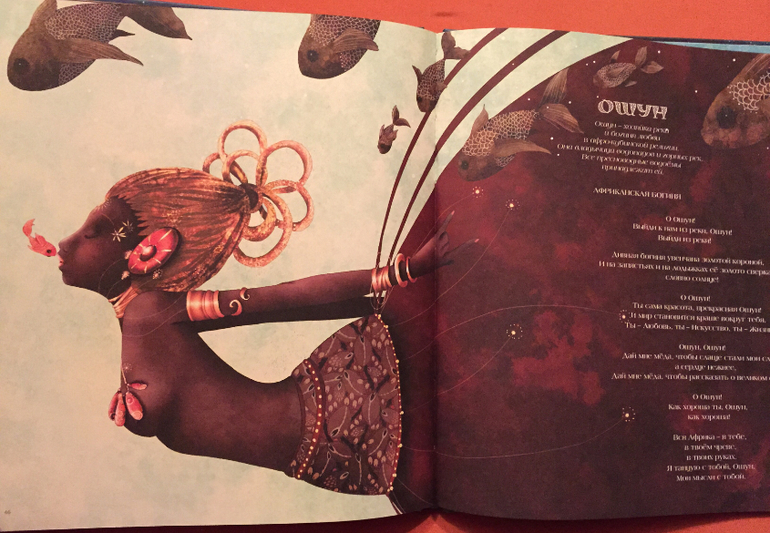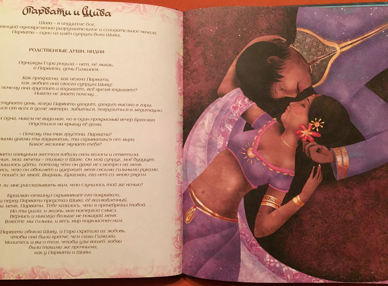 И читатель путешествует по страницам этого альбома, как зачарованный, погружаясь в атмосферу, созданную чудесными иллюстрациями, слушает мысли, чувства, шепот богов, которые, кажется, сошлись в каком-то мистическом танце, прилетели со всех уголков света, из разных времен и культур, каждый - в своем наряде, со своими обычаями и традициями.