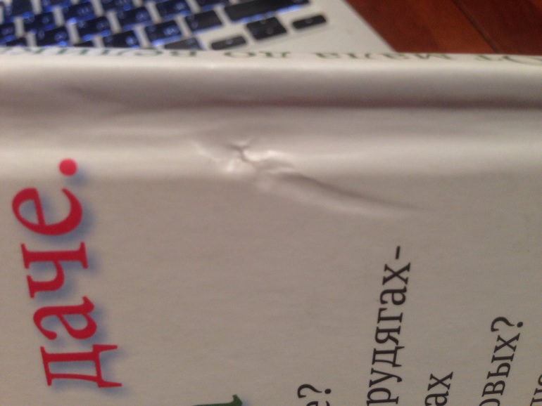 дыра сквозная ,при этом похоже эта та же самая книга которую я отправила назад в первый раз ...