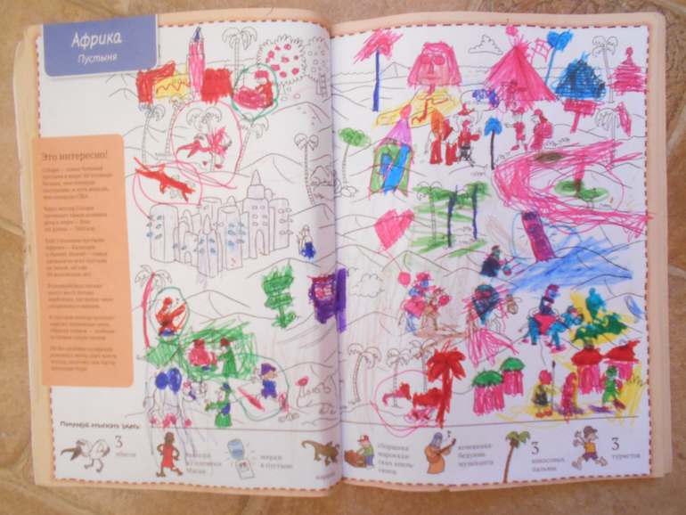 Библиотеки (городские, сельские, домашние)Скажу сразу, к раскраскам у меня отношение предвзятое) Сама не знаю откуда, но сидит во мне убеждение, что простое банальное "закрашивание" картинки не только развивает мелкую моторику, сколько отбивает у ребенка "желание творить". Посему, пока старшему ребенку не исполнилось 4 года раскрасок дома вообще не водилось. Но так, как раскраски - это замечательный способ занять ребенка на долгое время, а маме в это время заняться своими делами, я решила - раскраскам дома быть!) Но свой выбор я останавливаю, как правило на раскрасках, которые, по моему мнению, способствуют развитию фантазии и вкуса в ребенке