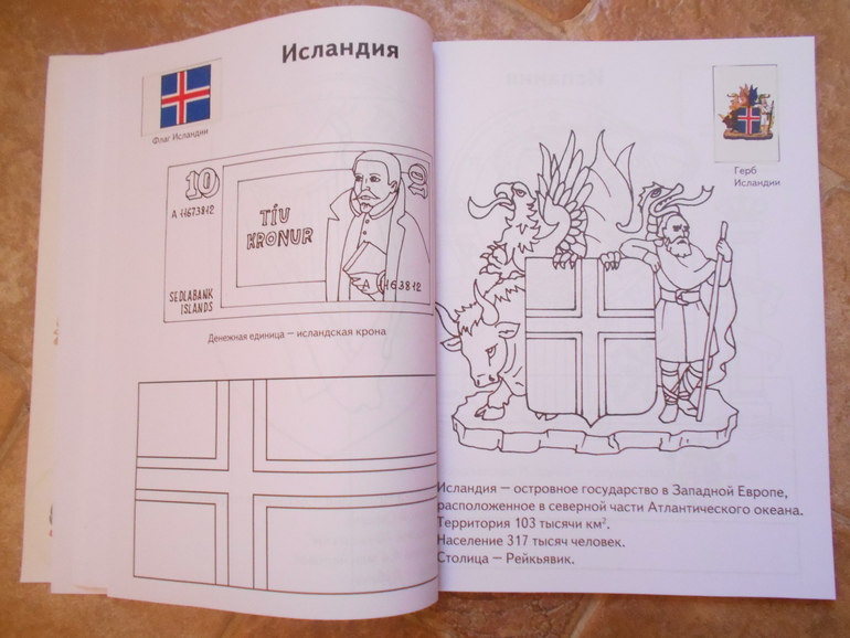 Ну вот опять же таки, тема географии. Журналов с наклейками флагов, национальных костюмов и достопримечательностей, у нас уже побывало немало, но вот так, чтобы можно было при этом и раскрасить флаги, увидела впервые. Уже начали потихоньку осваивать.