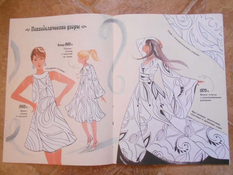А вот та раскраска, что про Винтаж, очень хороша! Фантазерка очень любит костюмы разных народов, долго может рассматривать нюансы, принт и пр. Так что эта раскраска однозначно ей понравится!