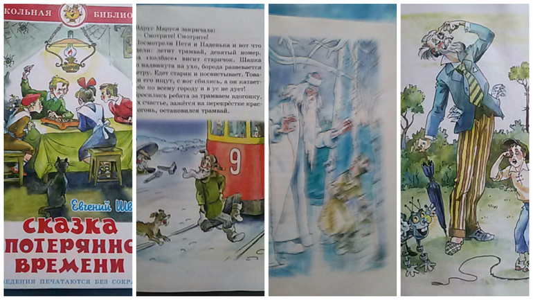 Евгений Шварц « Сказка о потерянном времени» Художник А. Елисеев, изд. Самовар. 2012. В книгу вошли рассказы « Сказка о потерянном времени», «Два брата», «Новые приключения кота в сапогах», «рассеянный волшебник». Ксюше понравились первые два рассказа.