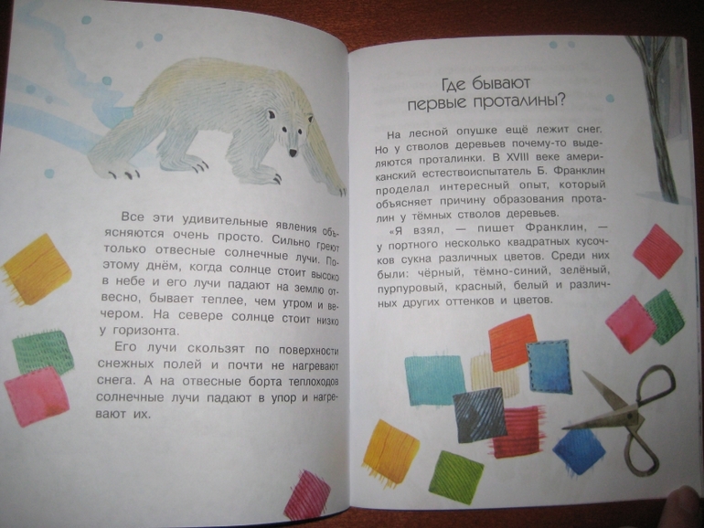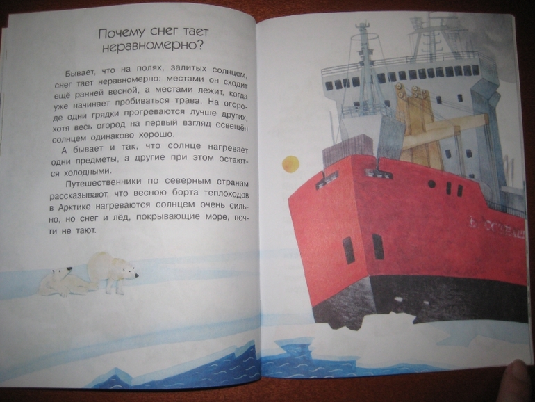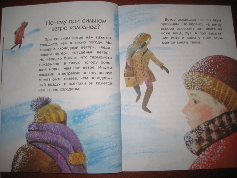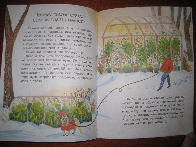 Книга написана очень живо, читается легко и хотя рекомендована она для младшего школьного возраста, думается, ее можно начинать читать уже и дошкольнику. Объем информации по каждому вопросу небольшой, ровно такой, какой нужен для удовлетворения вдруг возникшего любопытства :) Объясняются все явления достаточно просто и доходчиво. Хотя для придирчивого (читай - подкованного) читателя эти объяснения и могут показаться несколько поверхностными :)