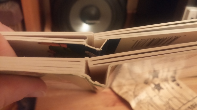 я тоже недавно такую получила в Лабиринте, все же решила забрать. Но мне не с чем сравнить т.к. это наша первая книга из серии. И да, пришла какой то потертой и потрепанной. Очень жаль что качество стало хуже.