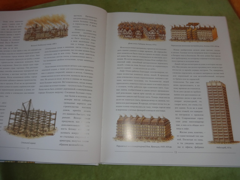 Книга - подарок для учащихся и взрослых! Книга, вызывающая трепет и преклонение перед создателями-строителями. Можно закрыть свои пробелы Мировой истории, пронаблюдать историю строительства жилья и других зданий, требующихся для жизни и работы.