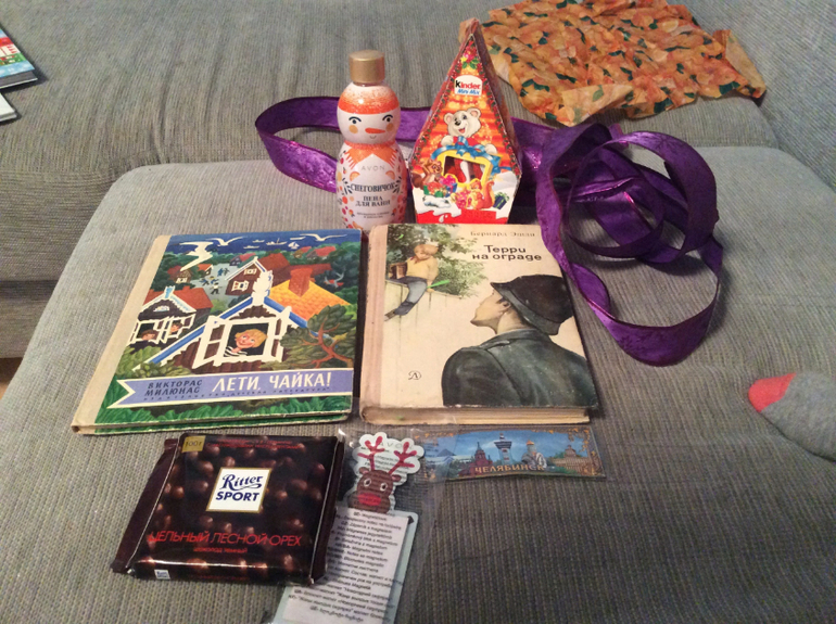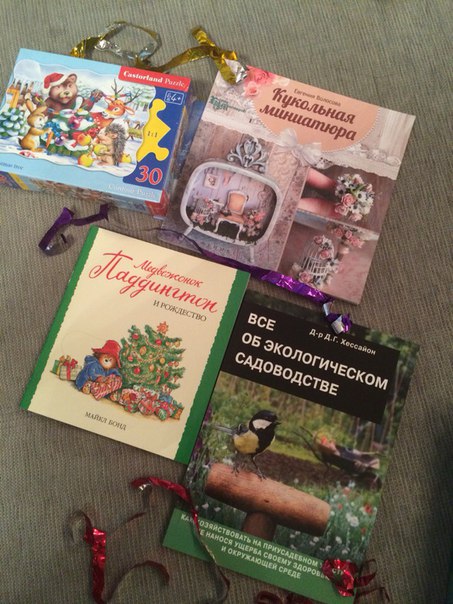 За несколько дней до наступления Нового года я получила посылочку из Челябинска. При чем получила ее в два этапа. Один- на почте, другой- с курьером Лабиринта! При этом с курьером вышел курьез. Я не люблю курьерские доставки у Лабиринта, предпочитаю самовывоз. В любом из пунктов самовывоза, где мне приходилось получать книги, работают ОЧЕНЬ ДУШЕВНЫЕ люди! и я никогда не променяю поход в пункт самовывоза, на курьера. Поэтому я была очень удивлена, когда мне позвонил курьер (в рабочее время) и интересовался, буду ли я в течении получаса дома, чтобы забрать заказ? Я напряглась, уточняю номер заказа, номер мне не известен, но у меня постоянно несколько заказов в обработке, так что это нормально. Я пытаюсь понять что за заказ по сумме, которую надо оплатить- курьер говорит, что заказ оплачен!!! Поистине чудеса! и если бы не правильно названный мой домашний адрес, я бы точно решила, что курьер что-то напутал. И тут я что-то припоминаю про возможную доставку на домашний адрес в рамках обмена подарками. сын был дома- курьер все донес)))