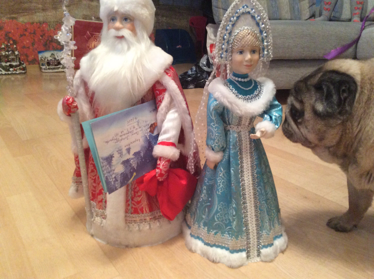 В съемки принимали участие мопс Муся, девочка Сашуля, Дед Мороз и Снегурочка- собственность семьи Карачевых