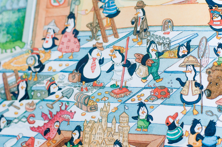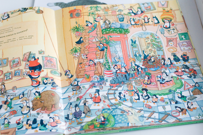 Было интересно сыну посмотреть, как развозит подарки Санта-Клаус, как люди покупают подарки, но по сравнению с пингвинами книга сильно проигрывает, здесь нет историй, нет достаточного количества смешных и интересных действий.