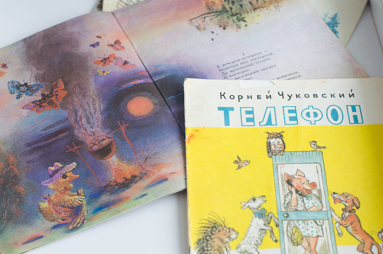 Достали из старенького и «Телефон» К.Чуковского, художник В.Сетеева, 1988, изд-во «Детская литература». Прочитали раз, не зацепило, не любим мы творчество Корнея Ивановича. Ю.Кушак так же не пришелся по душе ни мне, ни сыну (Ю.Кушак «Приглашение на уху», 1985, изд-во «Детская литература», художник В.Морозова). По мне бессмысленное стихотворение про утенка, который всех позвал на уху, а сам ничего не поймал, гости пришли, а он от стыда - топиться. Скучно. Больше и сказать нечего.
