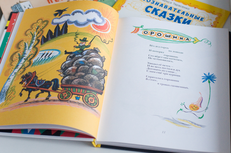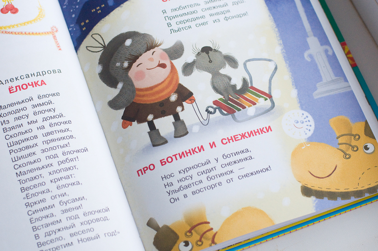 Наш фаворит это «Ребятишкина книжка» (И.Демьянов, М-П., 2014). Как-то все обходила покупку, искала оправдания: дорого, стихи опять же, рисунки своеобразные. А ребенок пришел и тыкнул пальцем: «Эту берем!». Видимо, он у меня лучше в литературе уже разбирается, чем мамашка, форумы там всякие читающая)))