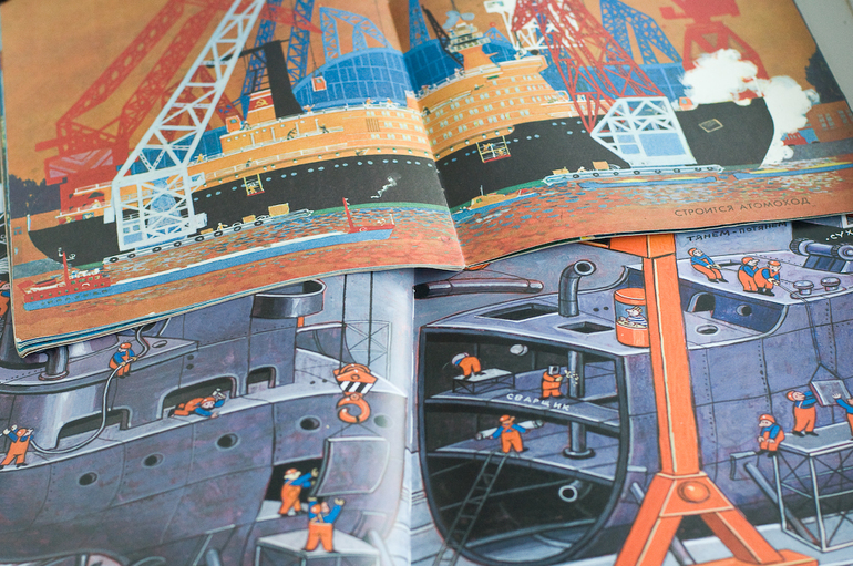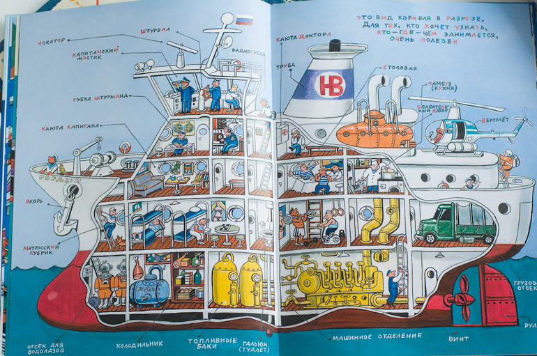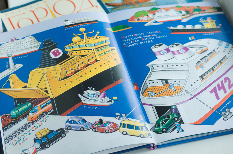 Особенно нам понравился разворот со строительством корабля. В «Городе и реке» тоже есть про строительство, для сравнения. Лично мне интересны были обе книги, Семе определенно от М-П.