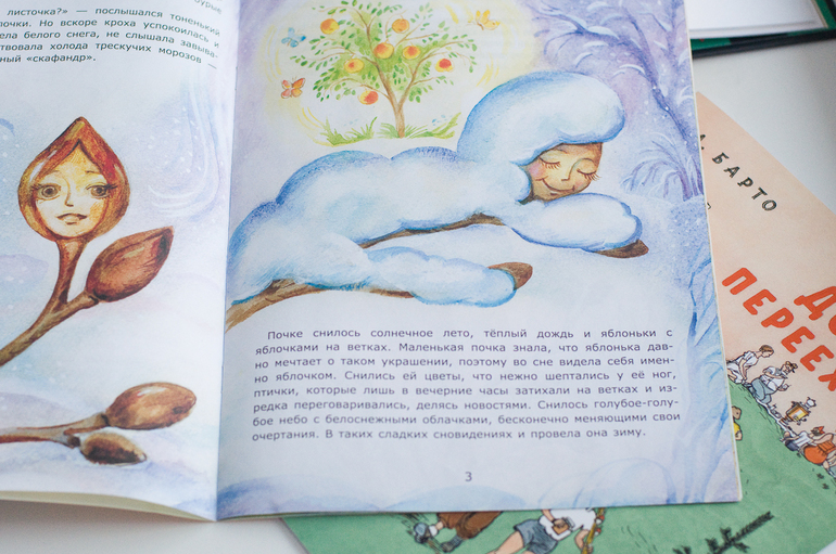 Вторая наша книженция из серии «Познавательные сказки» Л.Тарасенко «Молодая яблонька», Экзамен, 2016г. Тоже выбор сына, к тексту есть претензии, уж больно все приукрашено до тошноты, а в среднем добрая книжка, про то как почка на ветке стала яблоком.