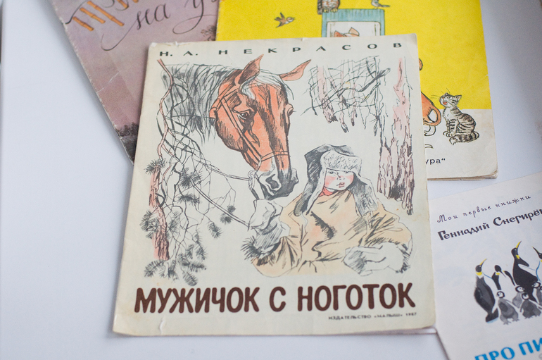 Н.А.Некрасов «Мужичок с ноготок», изд-во «Малыш, 1987. Ну это классика, но рано, про жизнь крестьянина на Руси не поговоришь.