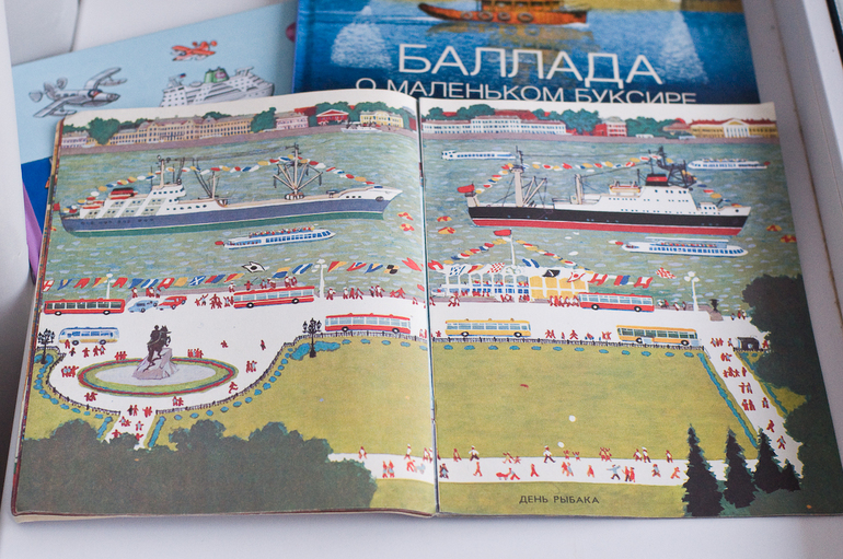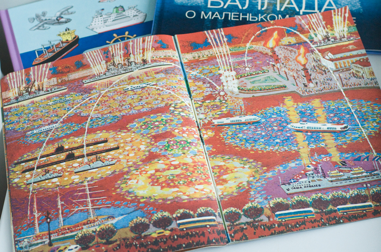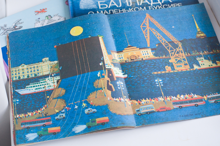 Начну с букинистического издания случайно купленного, что называется «до кучи». «Город и река», художник Бундин В.А., 1985г, изд-во «Детская литература». Настоящий советский виммель о самом красивом городе страны - Ленинграде.