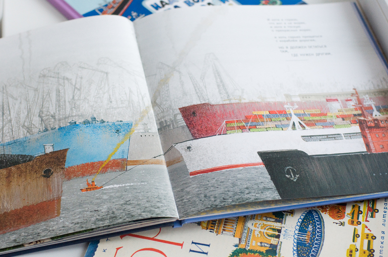 А ребенок переживал, как он там буксирчик совсем один без друзей? Все уплывают, а он остается? Да, остается, «я должен остаться там, где нужен другим». Самый переживательный разворот у нас.