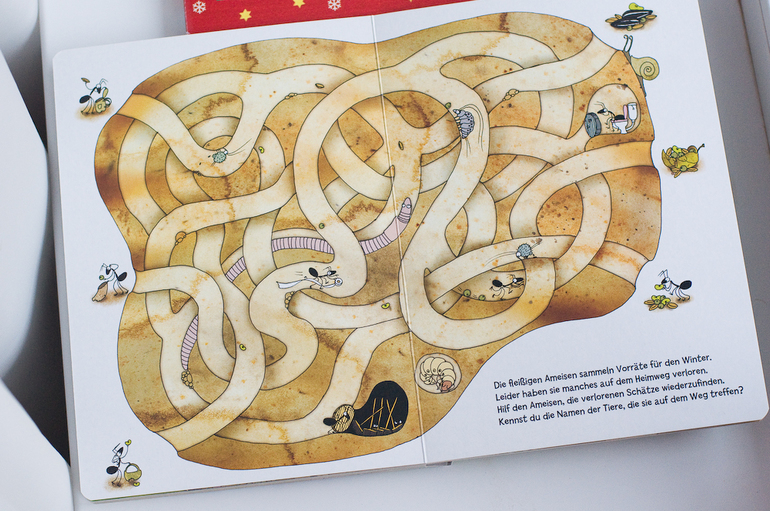 В книге есть и развороты с заданиями. вот, например, лабиринт.
