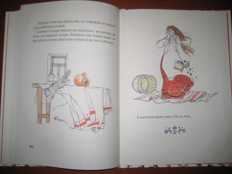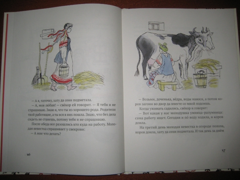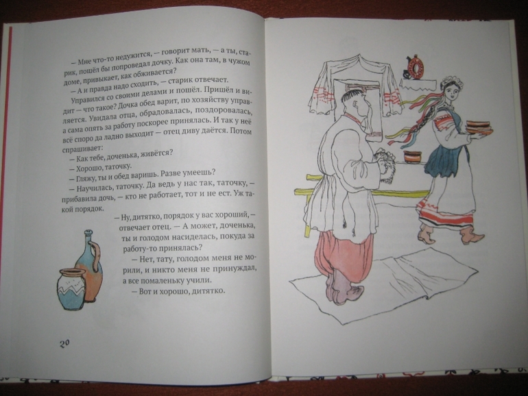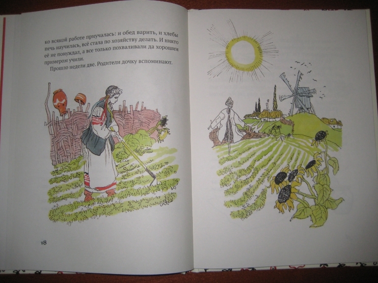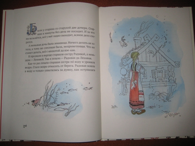 "Были у старика со старухой две дочери. Старшая и минуты без дела не посидит. И за что ни возьмется, все у нее ладно выходит, всякое дело спорится.
