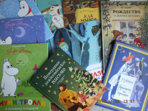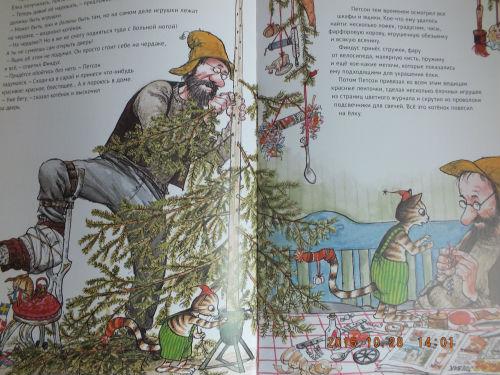 Я пробовала показать Семе мультик "Рождество в домике Петсона". Кстати, он практически по тексту книги сделан. Посмотрел Сема на него один раз, и отказался. Больше ему нравится, когда я ему читаю. На фоне этой любви конкретно к этой книге мы прочитали еще "Историю о том, как Финдус потерялся.." , но на этом и все. Больше сын не захотел. К концу декабря и вовсе все стухло, больше не доставали. Я все еще надеюсь, что мы почитаем еще истории про Петсона и Финдуса. У меня ж вся коллекция собрана.